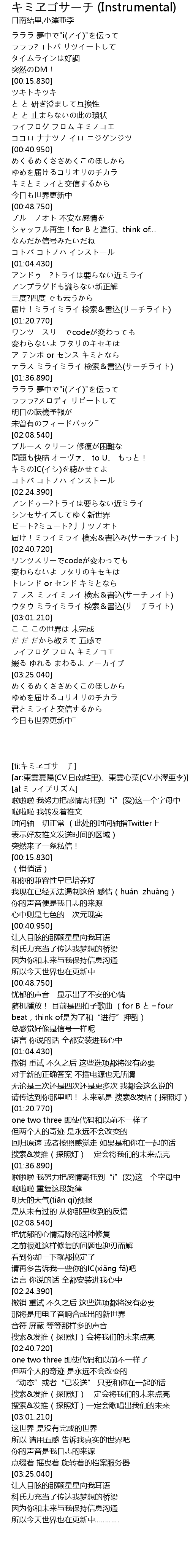 | [00:45.110] | キミとミライと交信するから |
