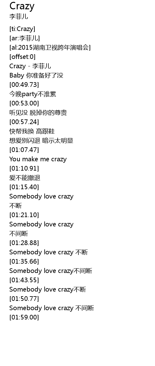 | [01:55.88] | Somebody love crazy bu jian duan |