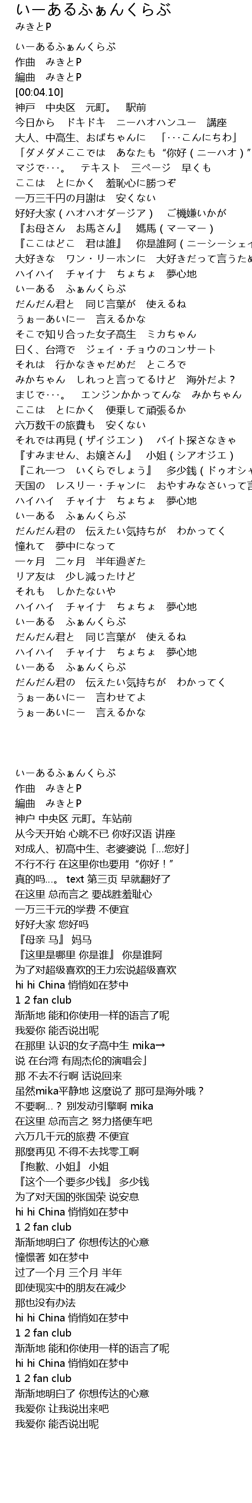 | [03:19.50] | いーある ふぁんくらぶ |
