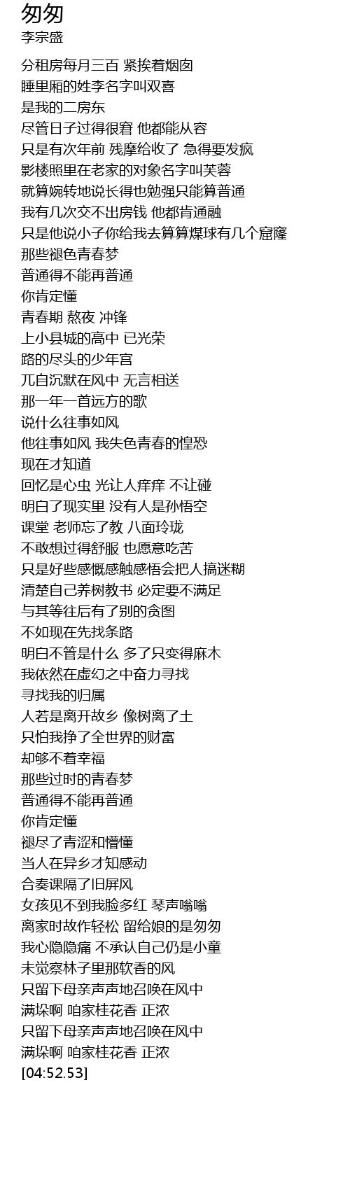 | 歌曲 | 匆匆 |