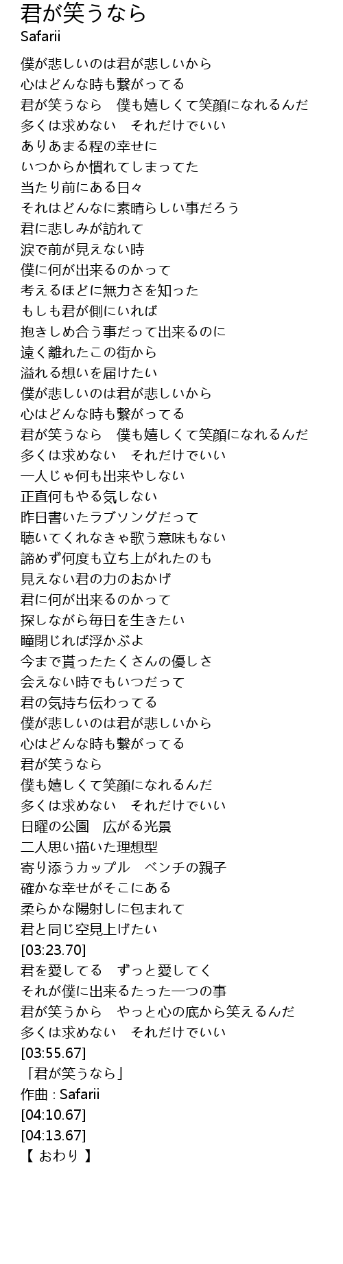 | [03:38.11] | 君が笑うから やっと心の底から笑えるんだ |