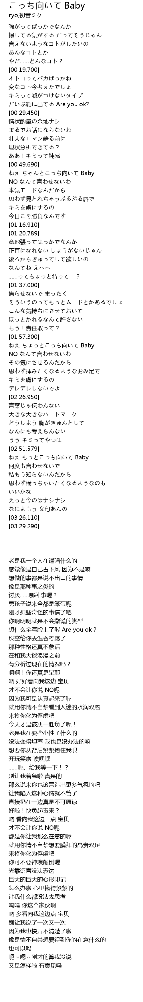 | [00:50.390] | ねえ ちゃんとこっち向いて Baby |