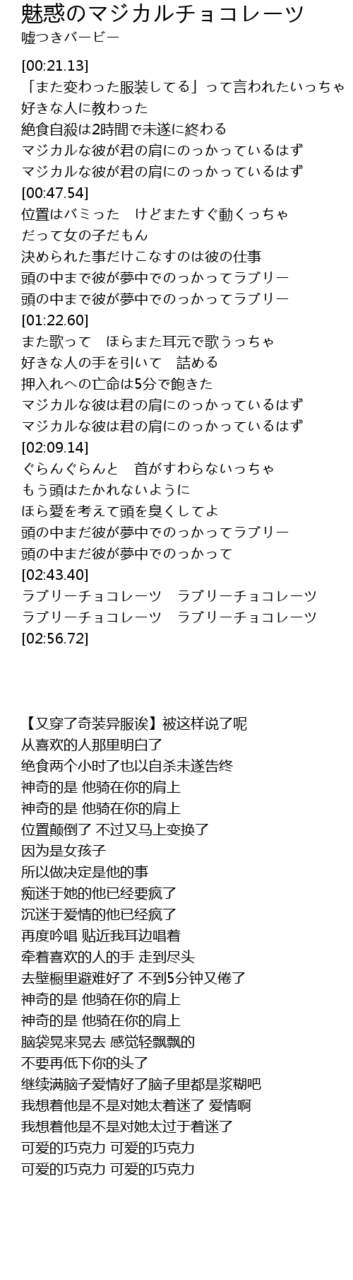 | [02:49.37] | ラブリーチョコレーツ ラブリーチョコレーツ |