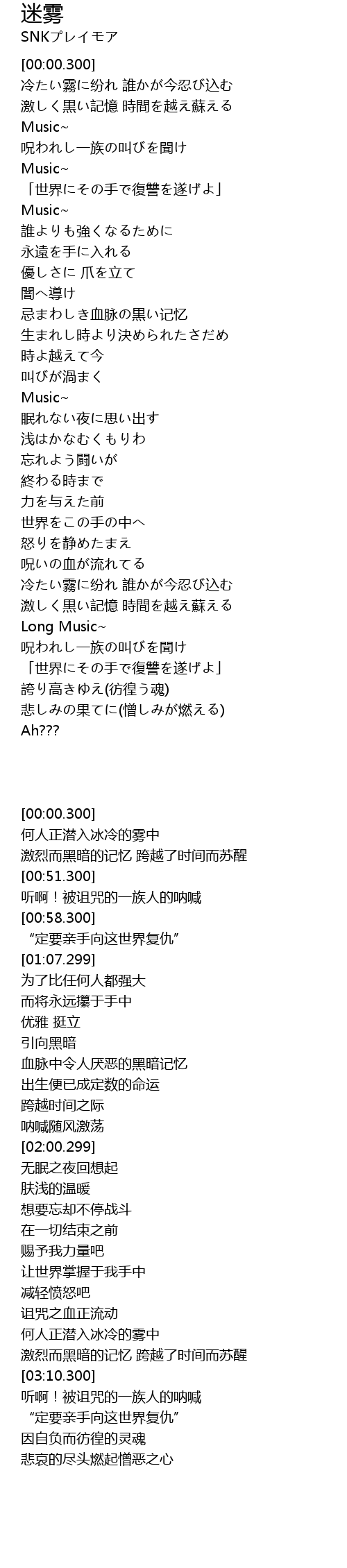 | [02:55.300] | 冷たい霧に纷れ 誰かが今忍び込む |