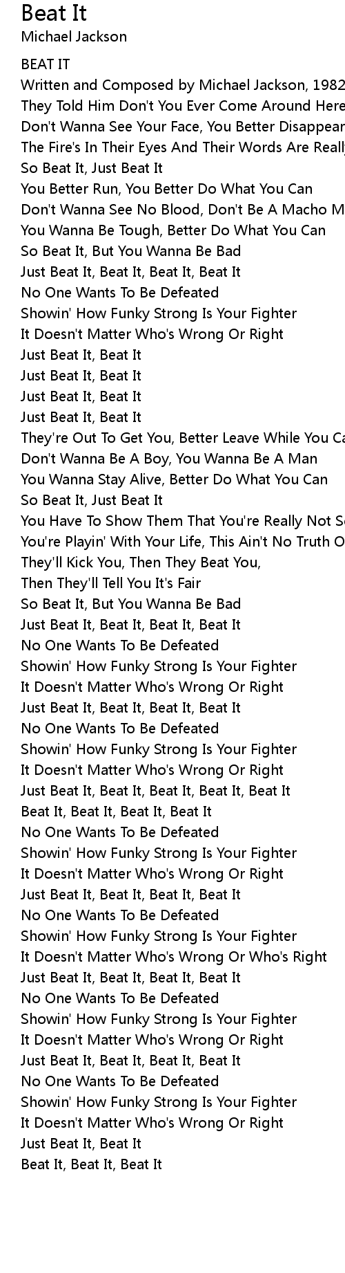 [02:09.00] Just Beat It, Beat It, Beat It, Beat It