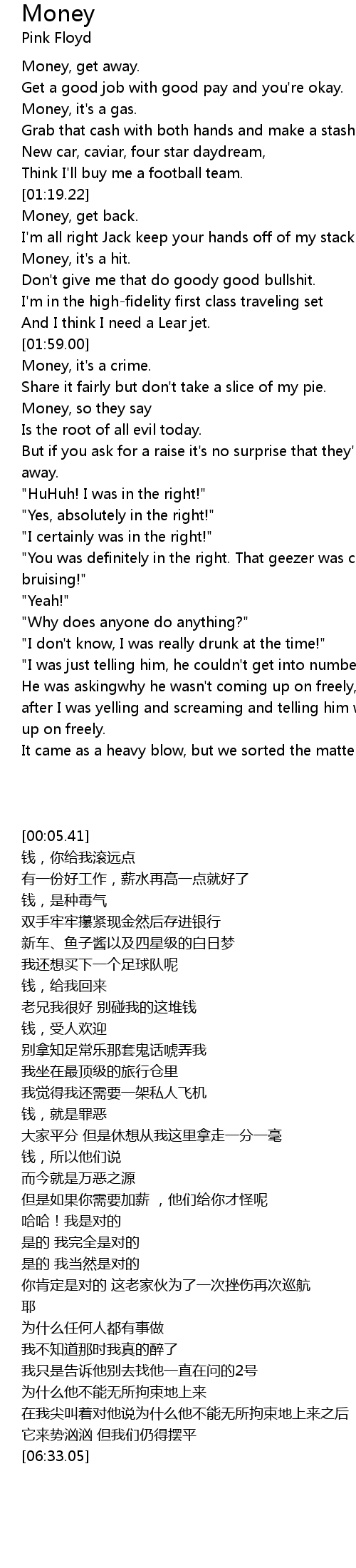 Money 歌词