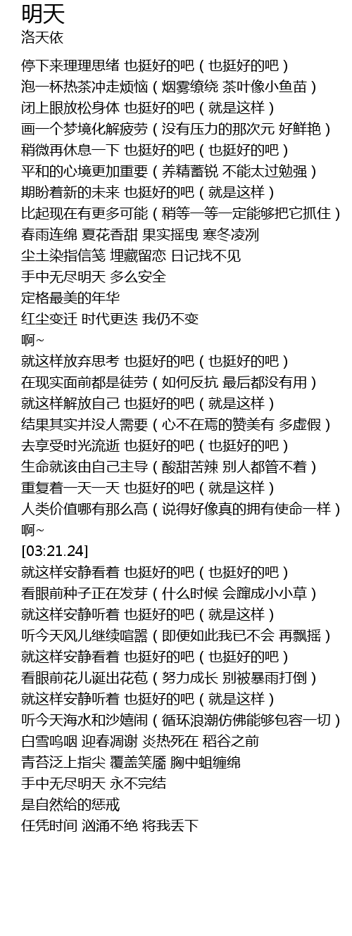 | [02:53.21] | chong fu zhe yi tian yi tian ye ting hao de ba jiu shi zhe yang |