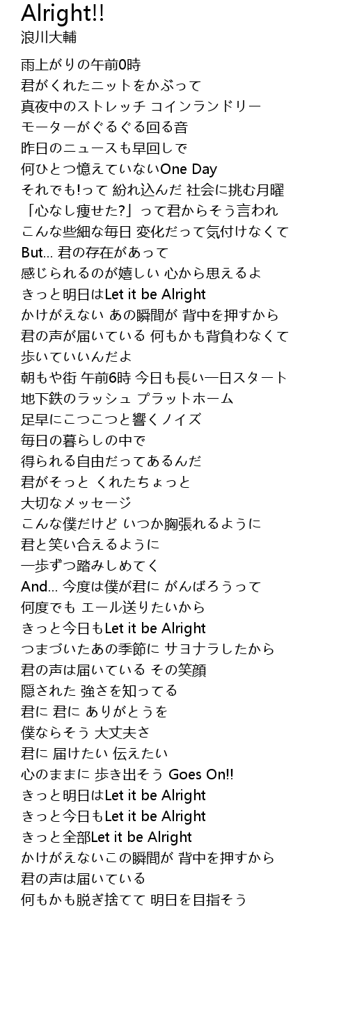 | [03:27.100] | きっと全部Let it be Alright |