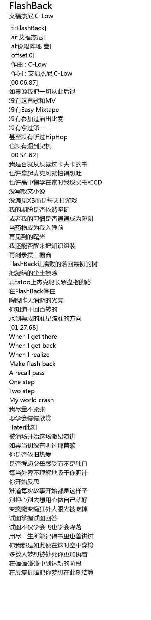 | [00:01.00] | 作词 : 艾福杰尼,C-Low |