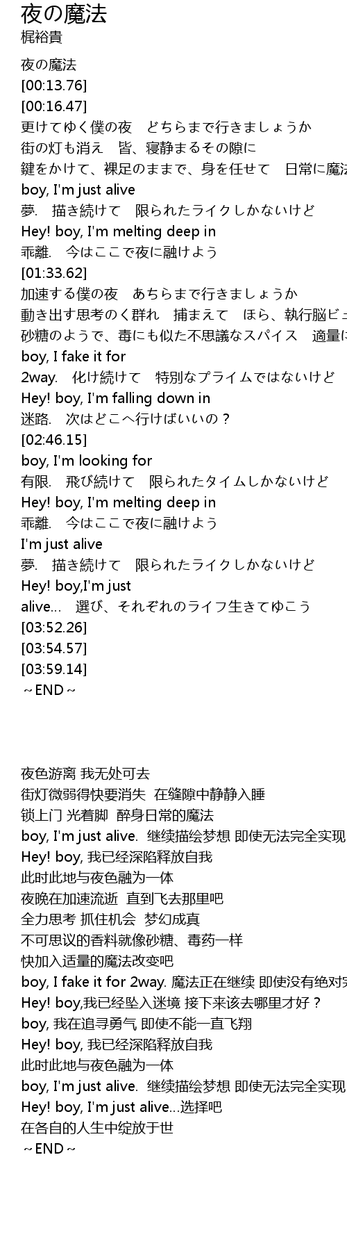 | [00:00.00] | 夜の魔法 |