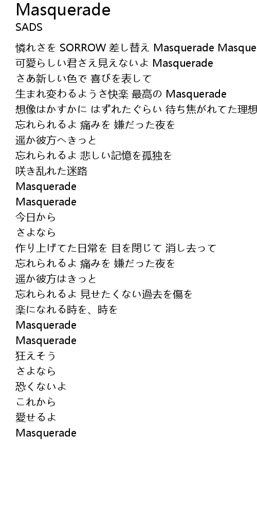 | 憐れさを SORROW 差し替え Masquerade Masquerade | |