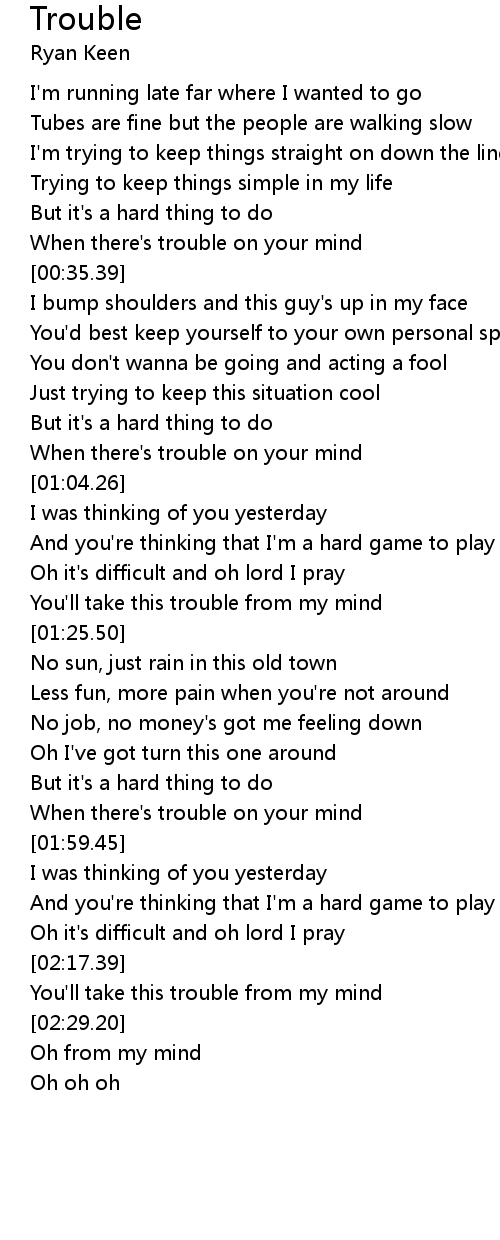 When there's trouble on your mind |