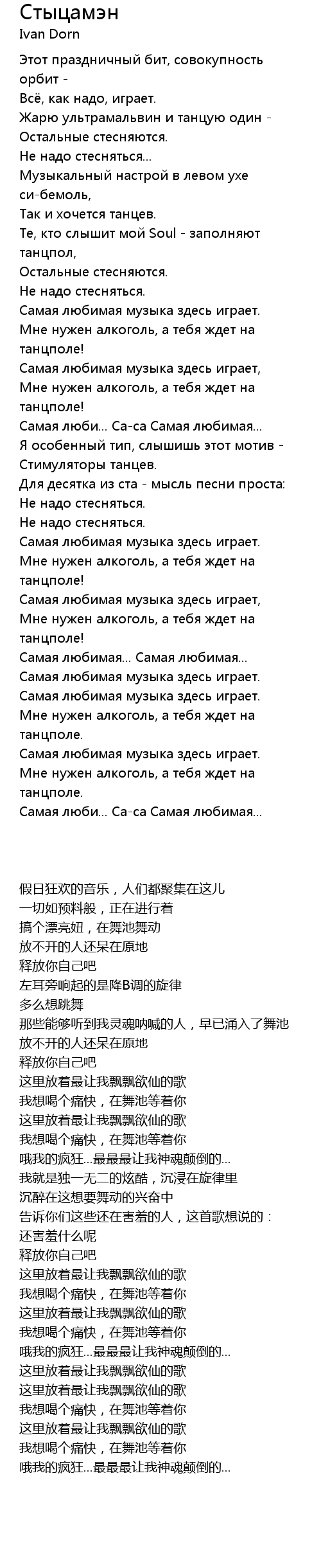 | [01:14] | Мне нужен алкоголь, а тебя ждет на танцполе! |