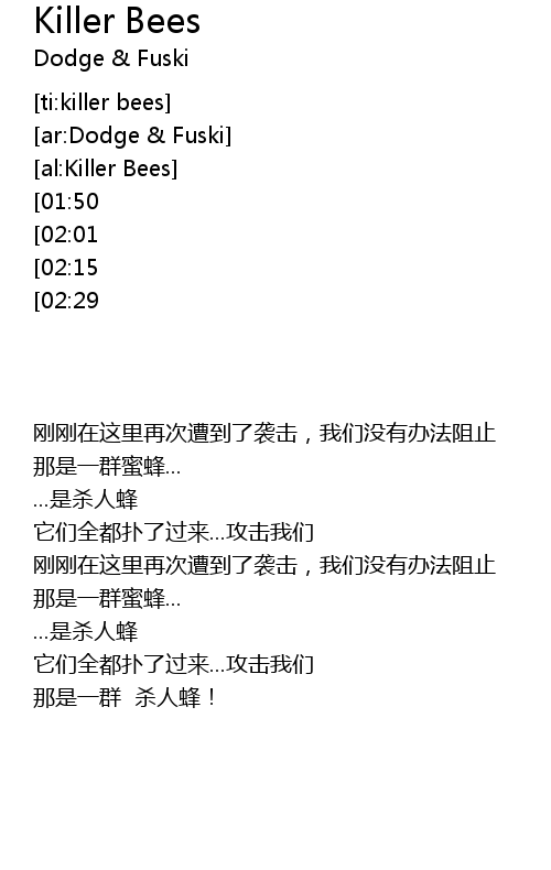 | [01:07][02:29] | they coming all and...comes gets hurt |