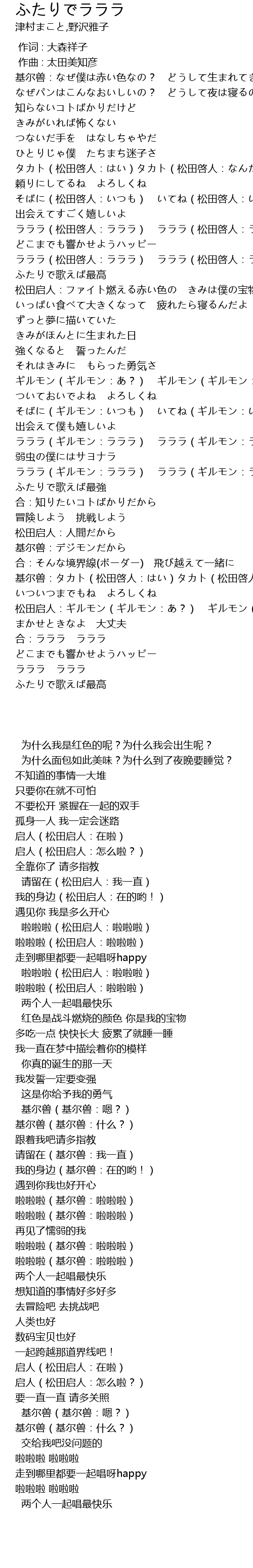 | [02:42.919] | ラララ(ギルモン:ラララ) ラララ(ギルモン:ラララ) |