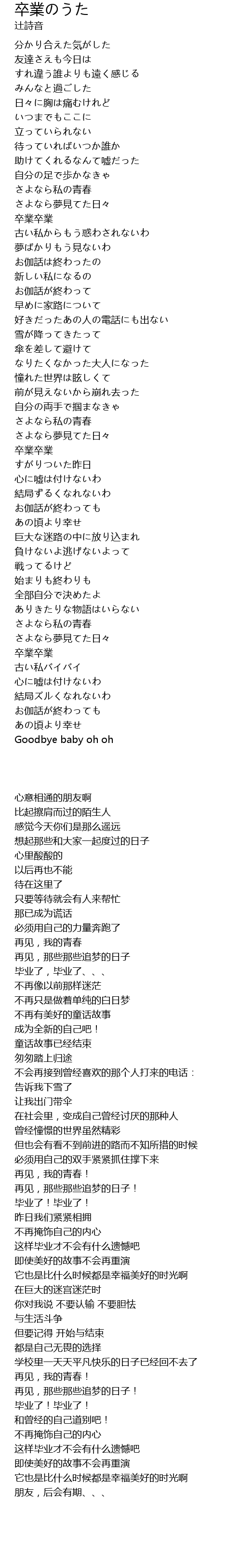 | [01:06.05] | 卒業卒業 |