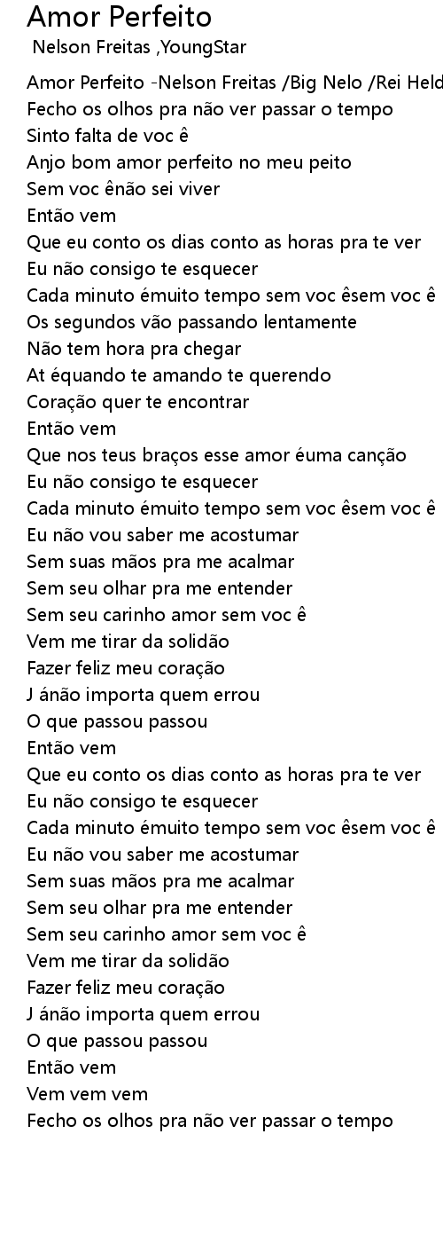 | [00:00.00] | Amor Perfeito Nelson Freitas Big Nelo Rei Helder |
