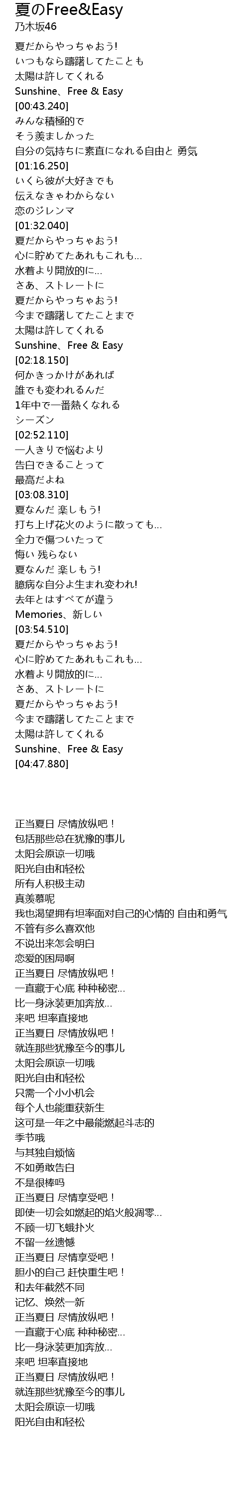 | [04:43.510] | 阳光自由和轻松 |