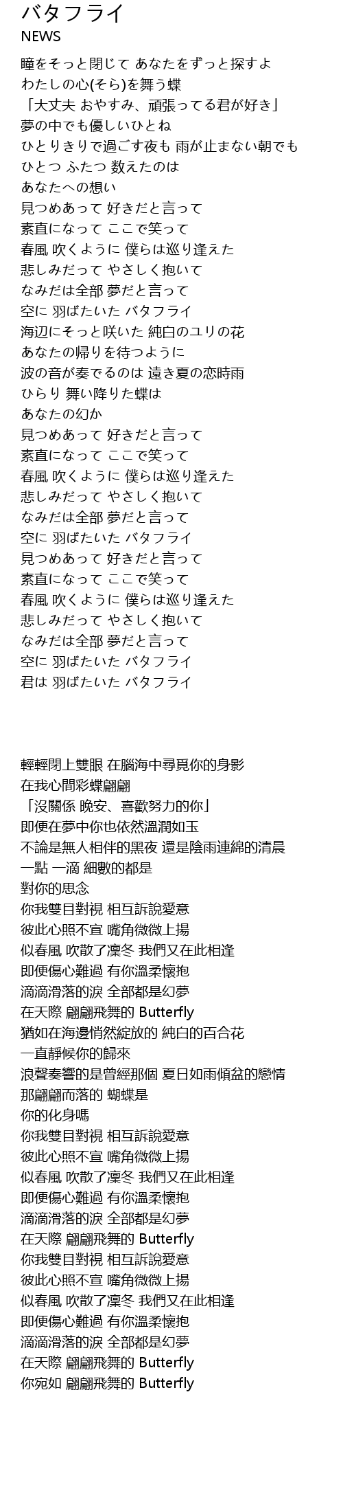 | [01:52.06] | 在天際 翩翩飛舞的 Butterfly |