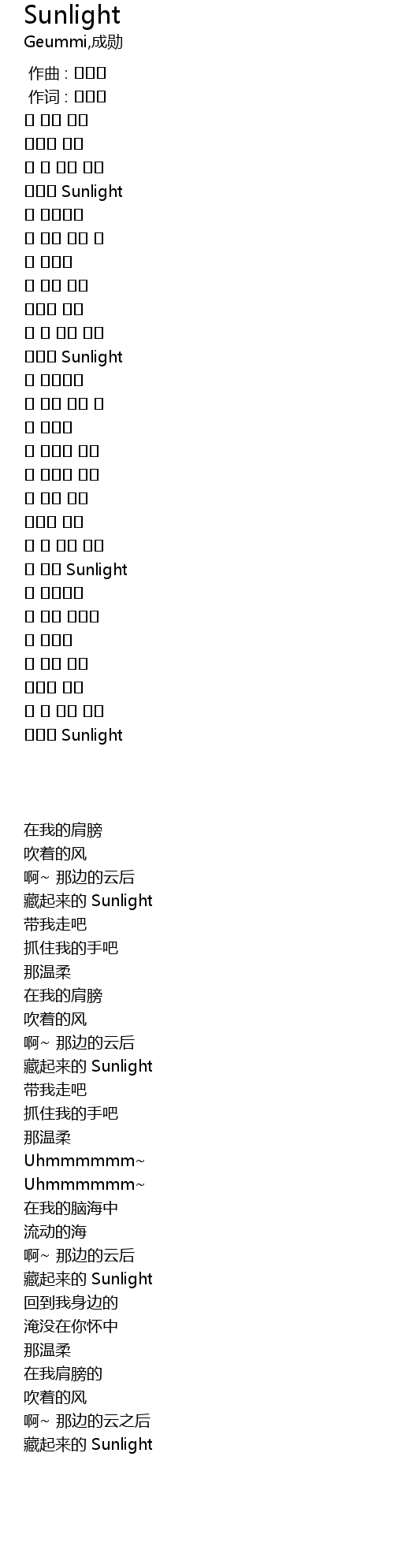 숨겨둔 Sunlight |