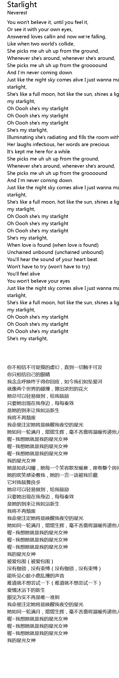 She's like a full moon, hot like the sun, shines a light on everyone my starlight, |