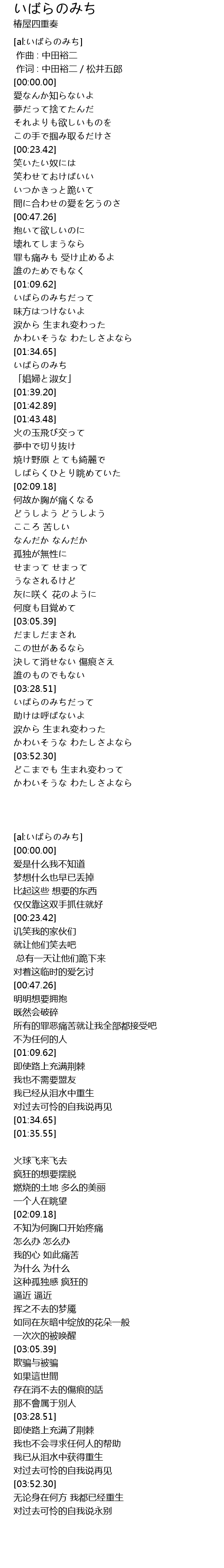 | [01:35.55] | いばらのみち |