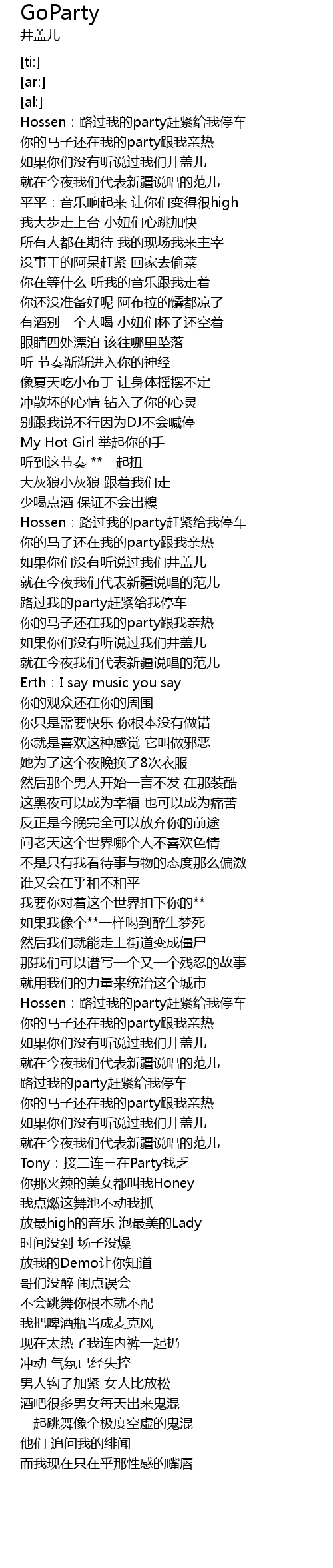 | [00:59.06] | My Hot Girl 举起你的手 |