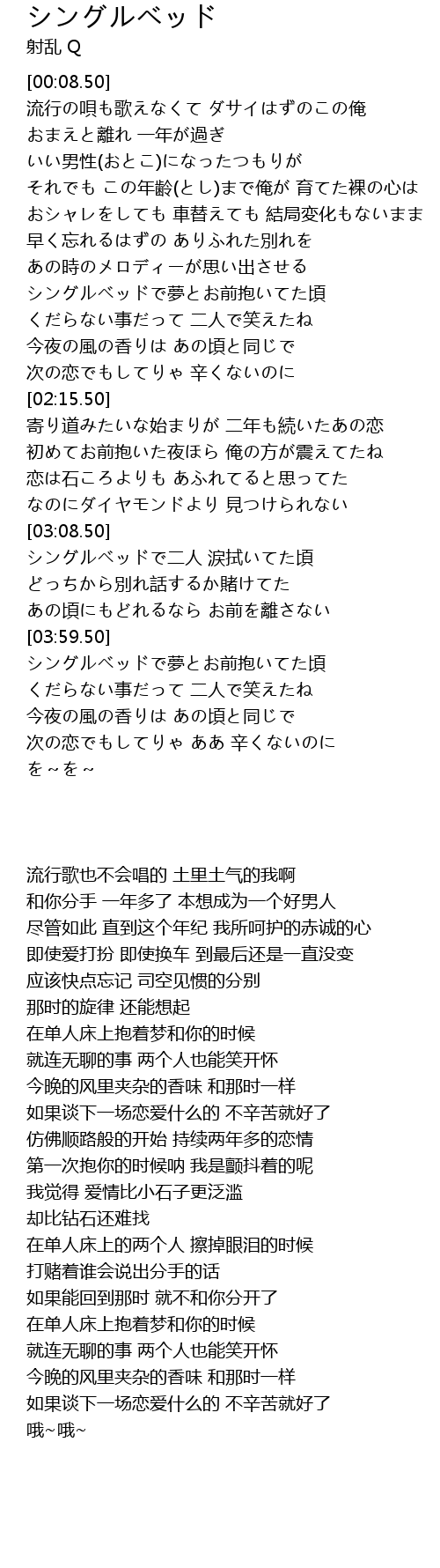 | [04:12.65] | 在单人床上抱着梦和你的时候 |