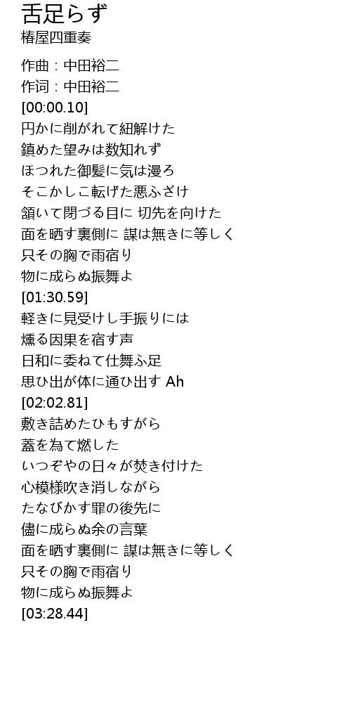 | [02:53.53] | 面を晒す裏側に 謀は無きに等しく |