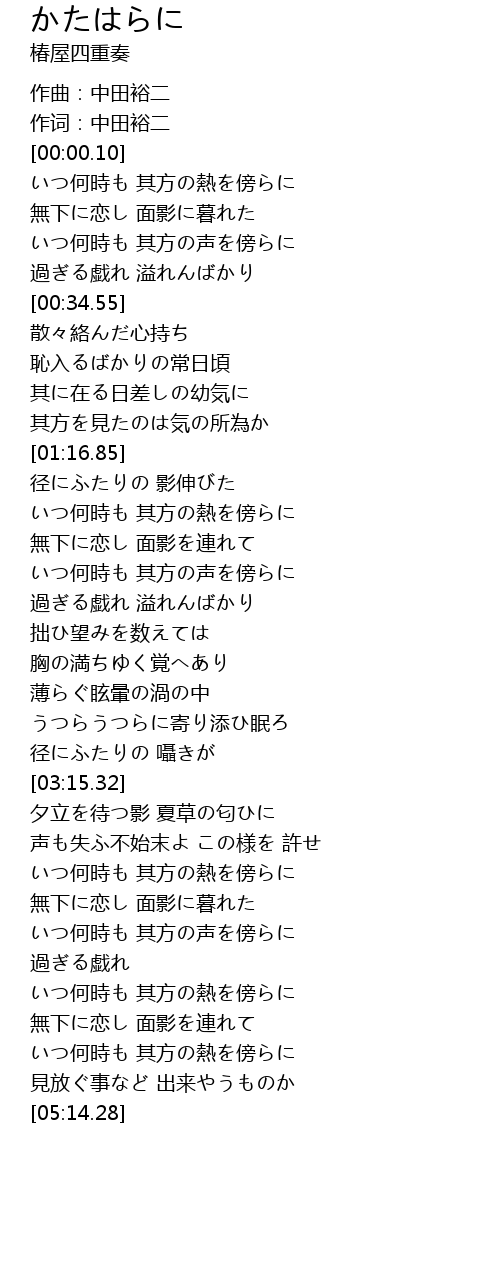 | [04:41.63] | いつ何時も 其方の熱を傍らに |