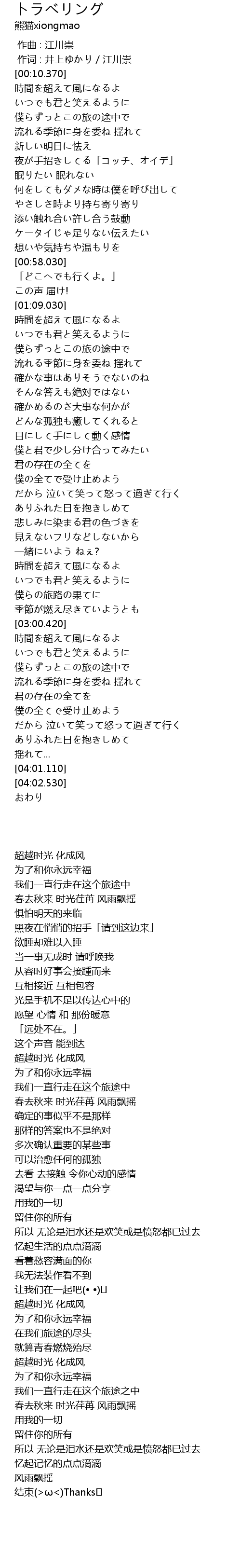 | [03:14.360] | 僕らずっとこの旅の途中で |