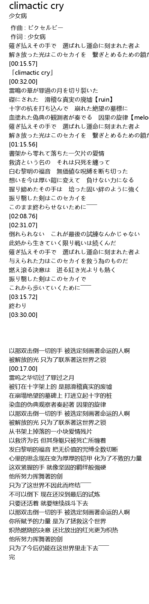 | [00:17.00] | 「climactic cry」 |