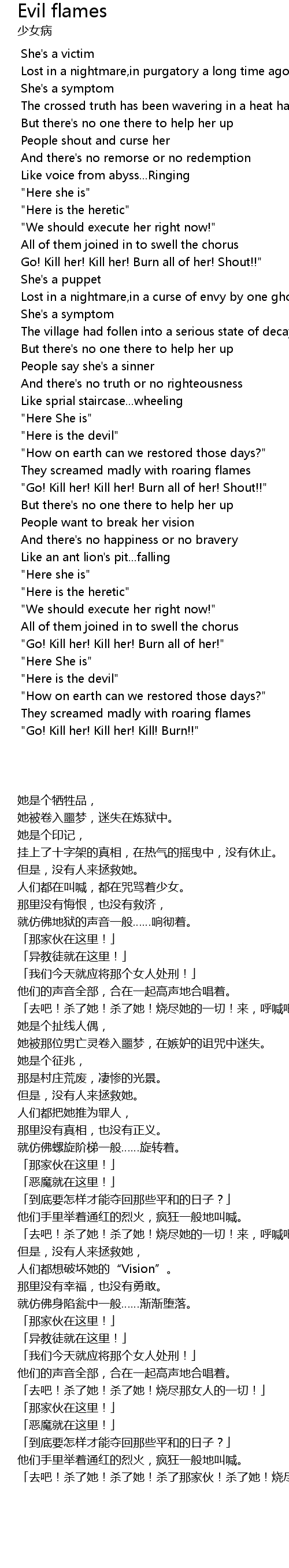 "Go! Kill her! Kill her! Burn all of her! Shout!!" |