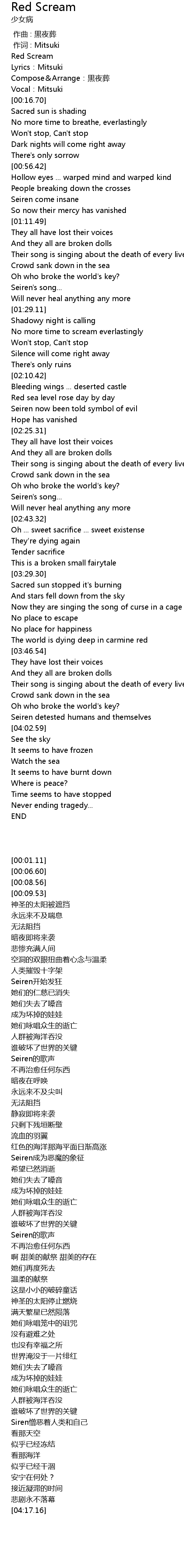| [00:01.11] | Red Scream |