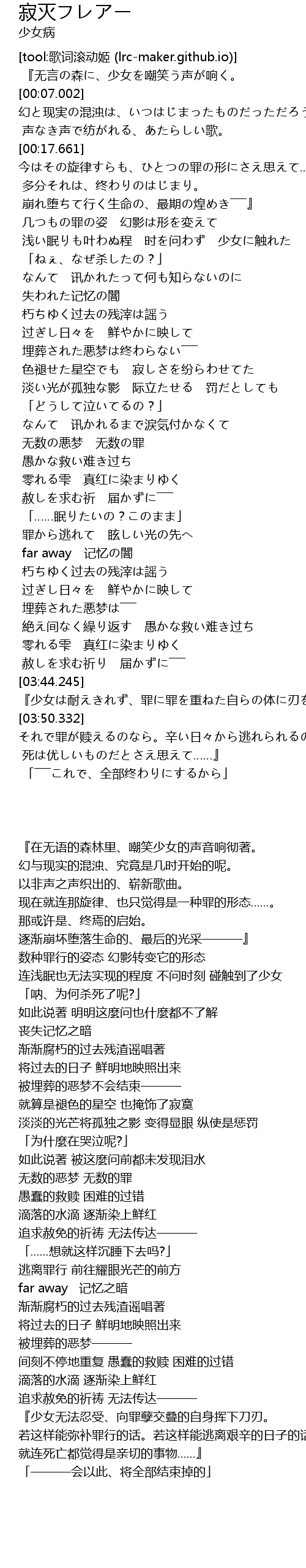 | [03:44.245] | 『少女无法忍受、向罪孽交叠的自身挥下刀刃。 |