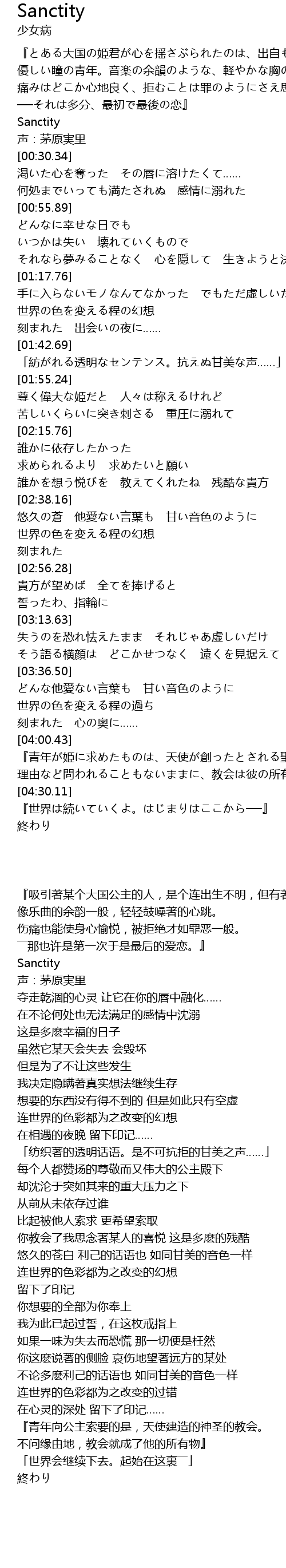 | [00:23.07] | Sanctity |