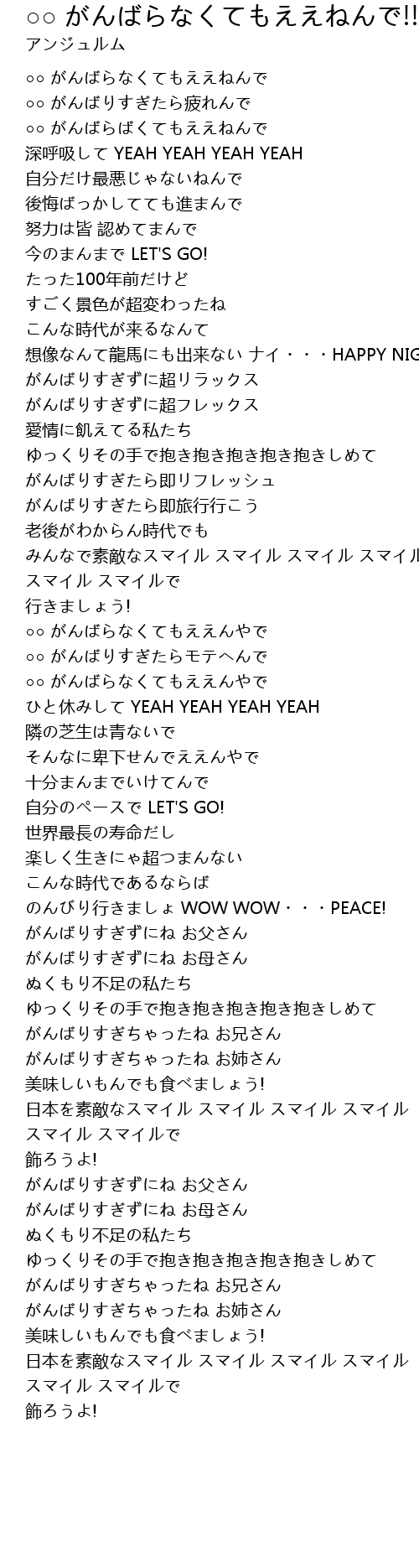 | 歌曲 | ○○ がんばらなくてもええねんで!! |