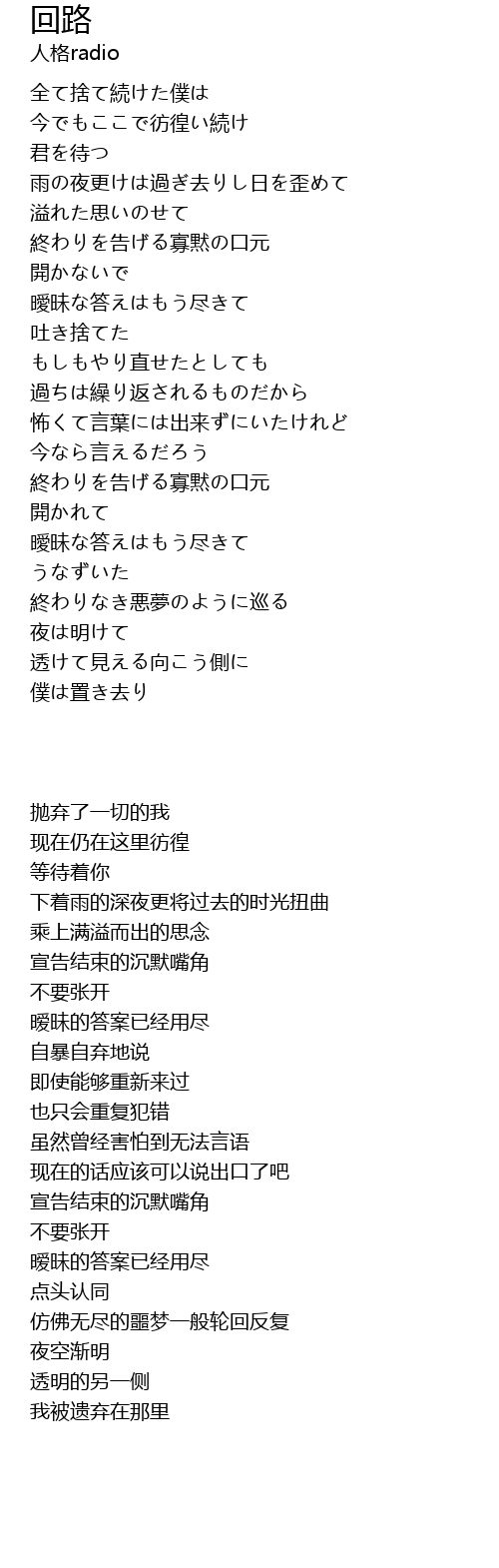 | [02:52.47] | 仿佛无尽的噩梦一般轮回反复 |