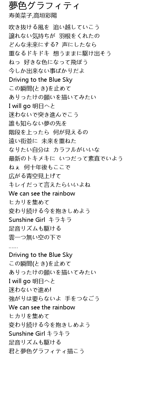 | [03:01.75] | Driving to the Blue Sky |