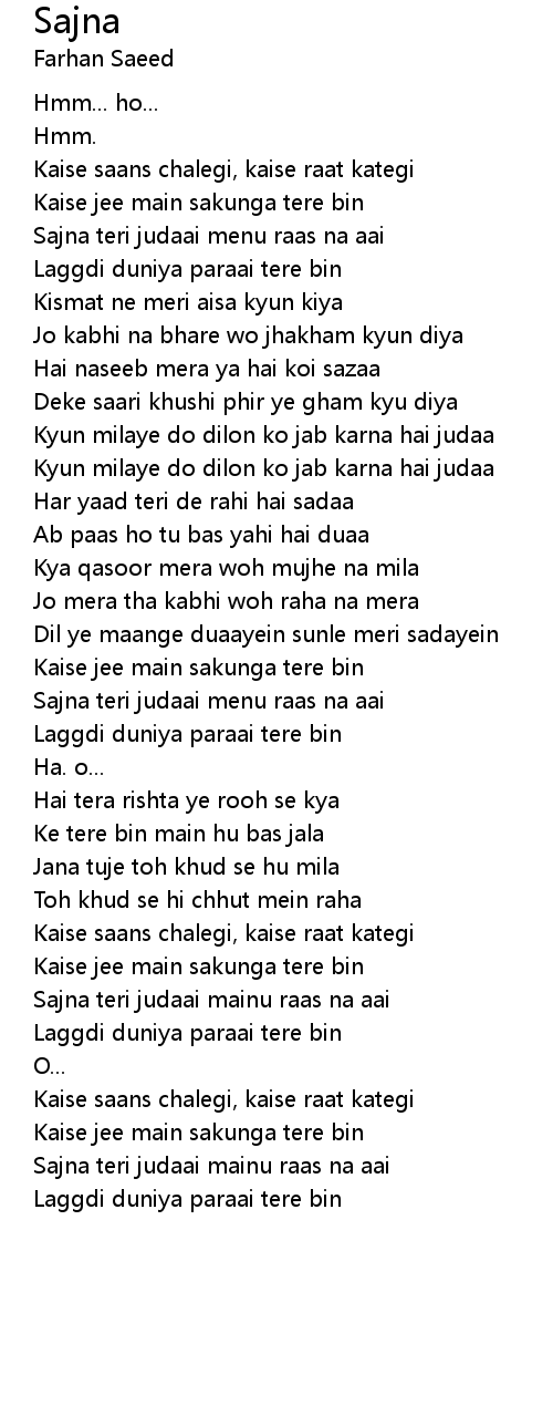 Sajna teri judaai menu raas na aai |