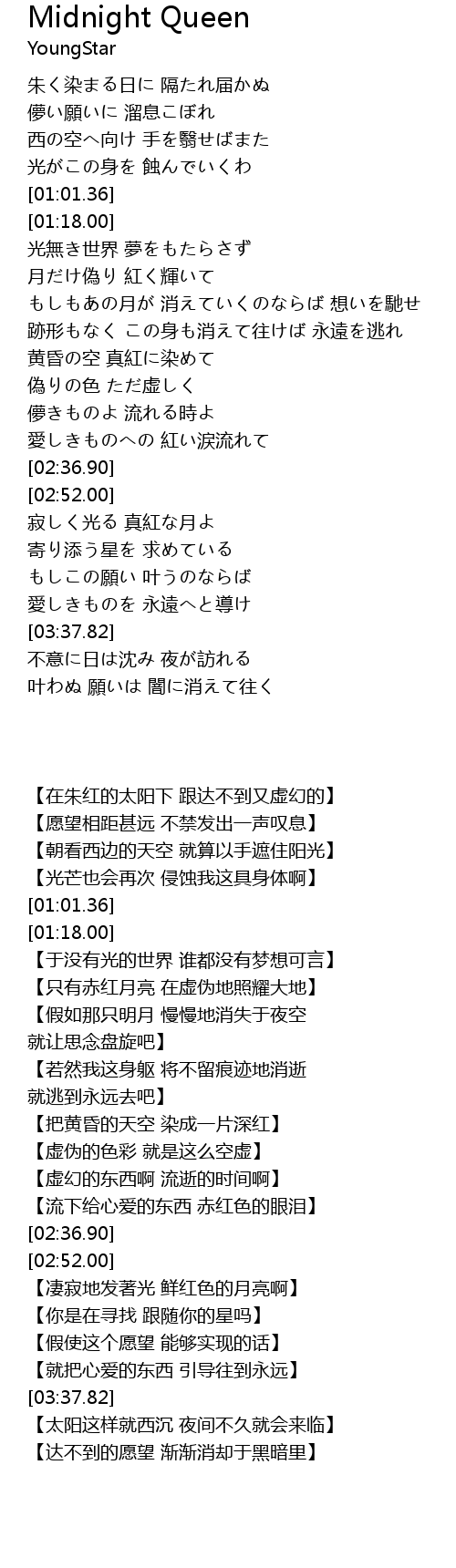| [02:53.50] | 【凄寂地发著光 鲜红色的月亮啊】 |
