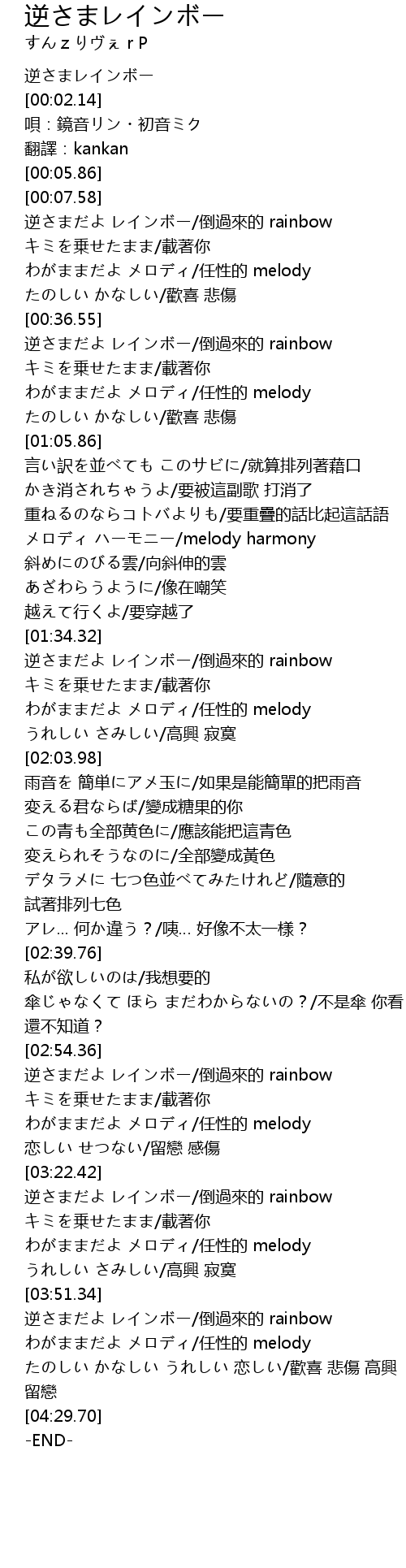 | [03:23.42] | 逆さまだよ レインボー/倒過來的 rainbow |