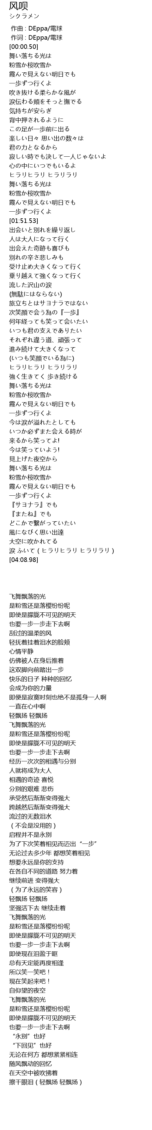 | [03:52.99] | 涙 ふいて(ヒラリヒラリ ヒラリラリ) |