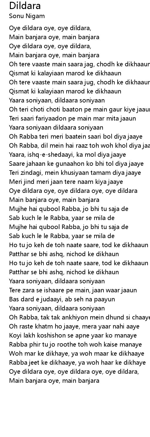 Oye dildara oye, oye dildara oye, oye dildara, |