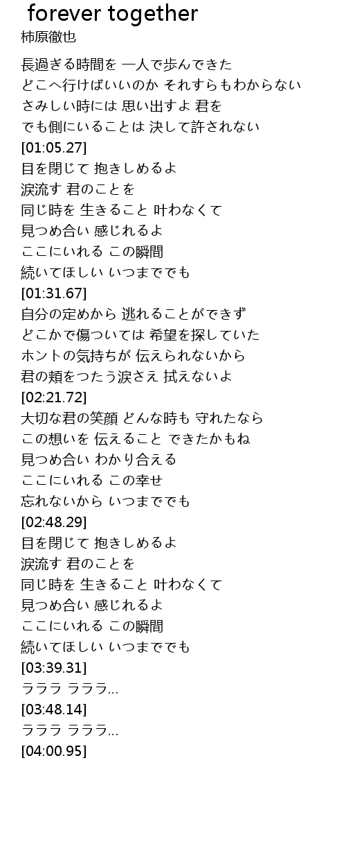 | [03:33.15] | 続いてほしい いつまででも |