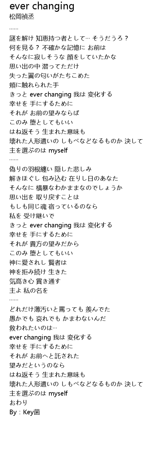 | [01:06.88] | きっと ever changing 我は 変化する |