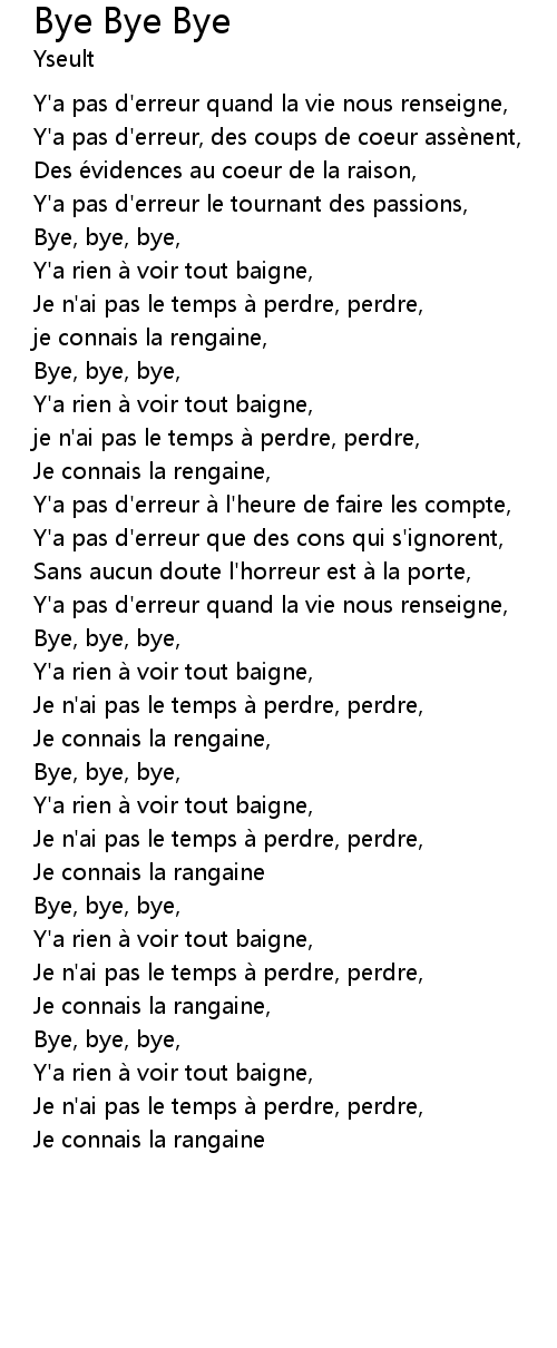 | Bye, bye, bye, | |