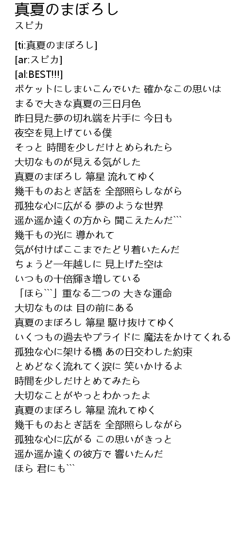 | [01:14.65] | 真夏のまぼろし 箒星 流れてゆく |
