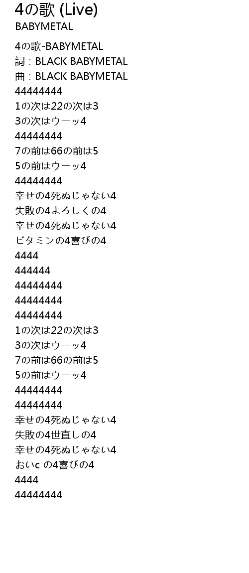 | [00:00.801] | 4の歌-BABYMETAL |