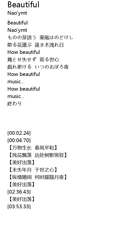 | [00:02.24] | Beautiful |